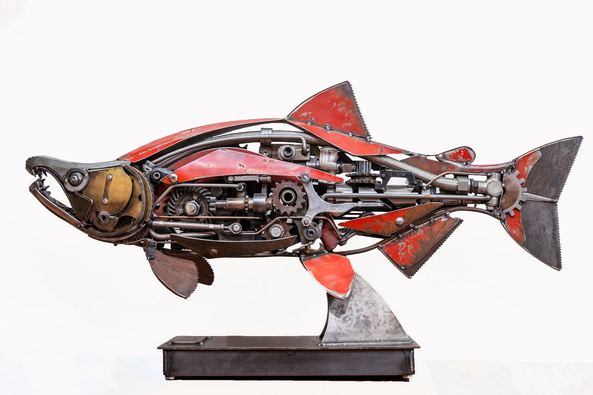 Driven – Industrial Metal Sockeye Salmon Sculpture by David Groenjes