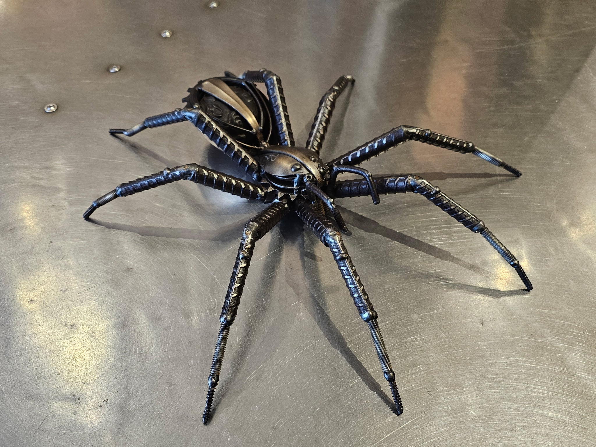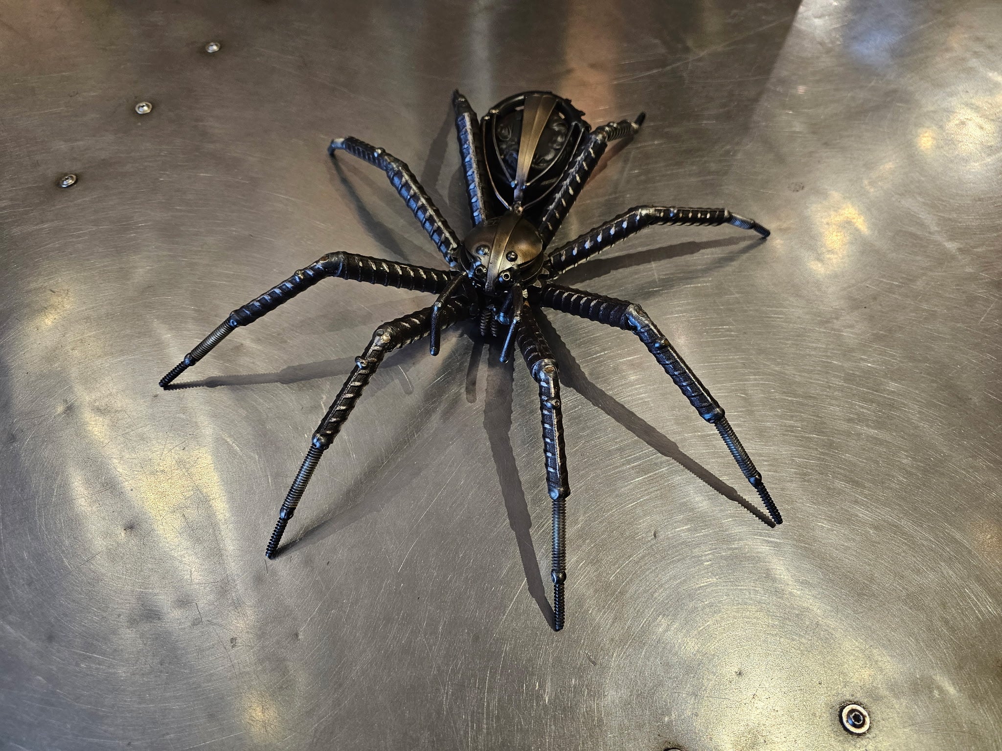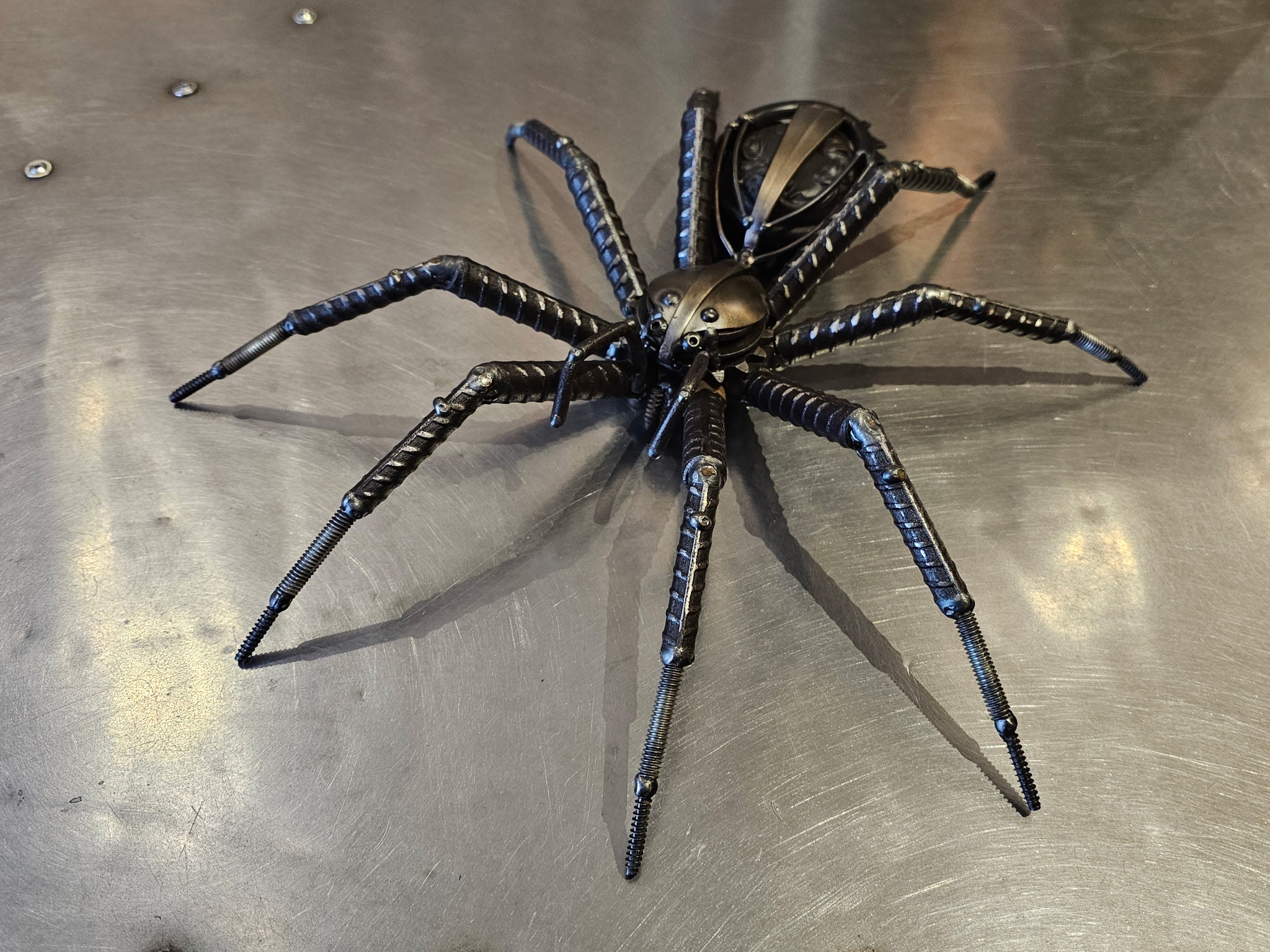 “Wolf Spider” by David Groenjes brings the intensity and precision of nature to life through reclaimed metal. Crafted entirely from welded and repurposed steel, this striking sculpture captures the raw power and intricate form of one of the desert’s most fascinating predators.