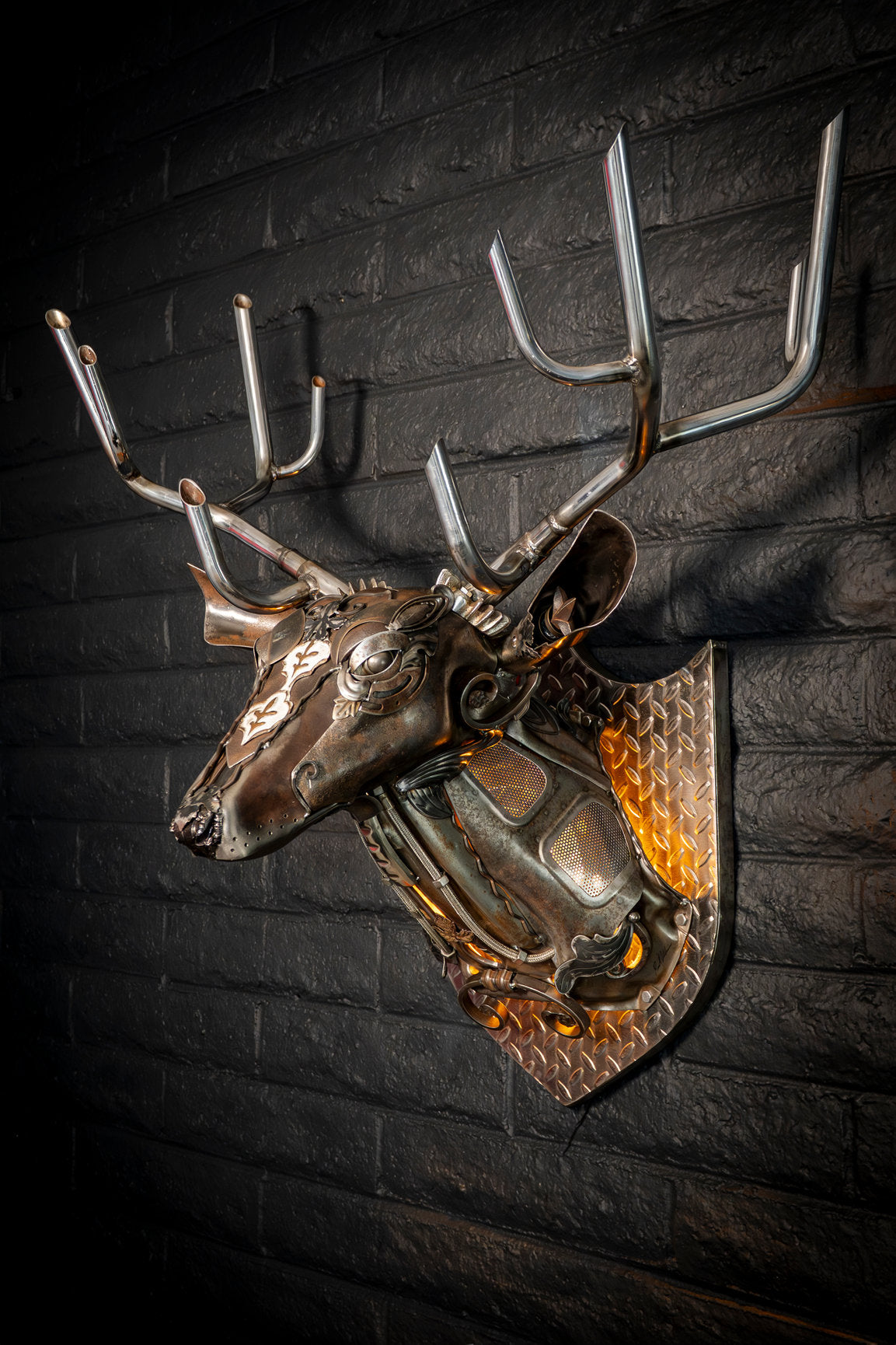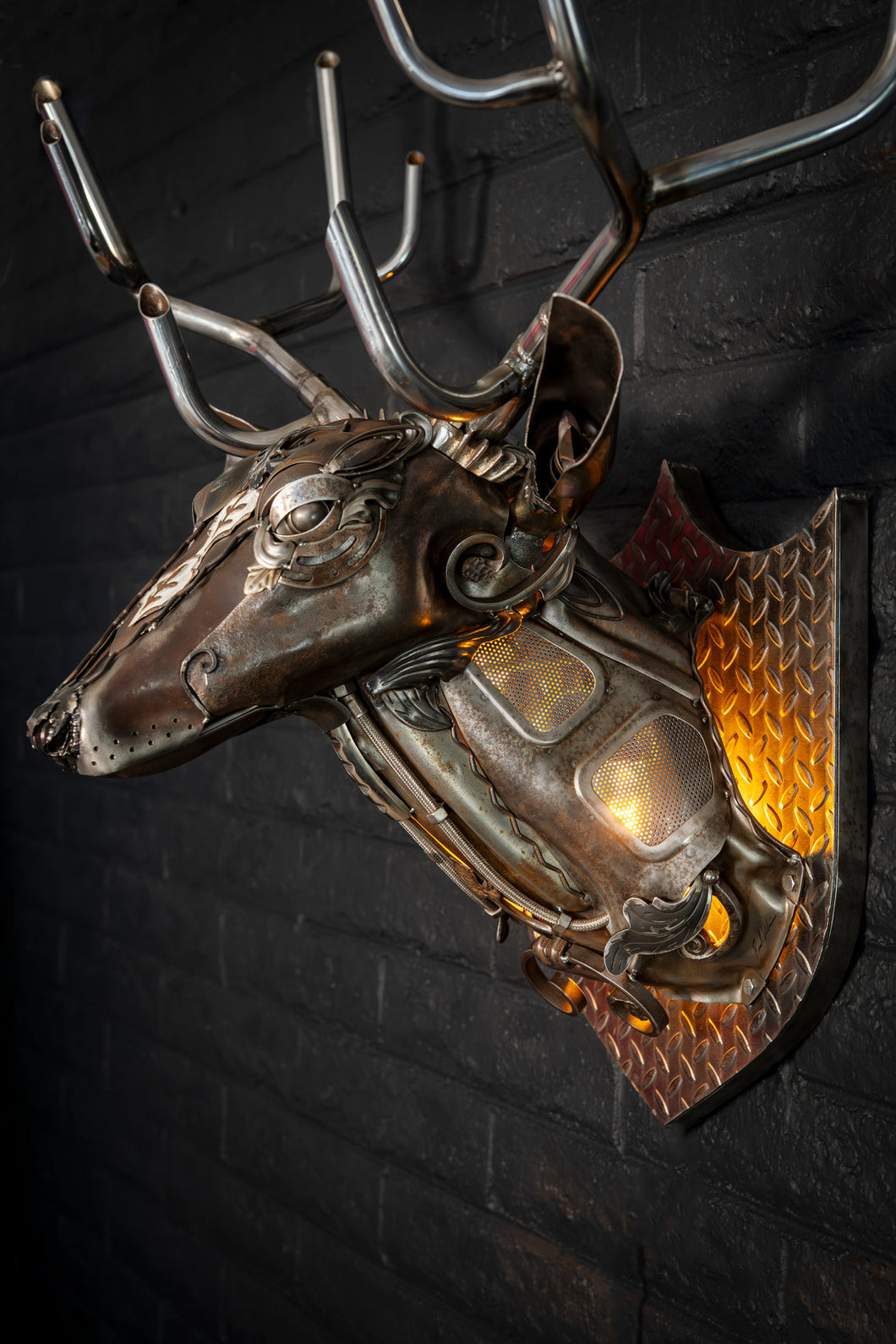 "Buck Wild" – Large Steampunk Metal Deer Sculpture by Paul Klaine