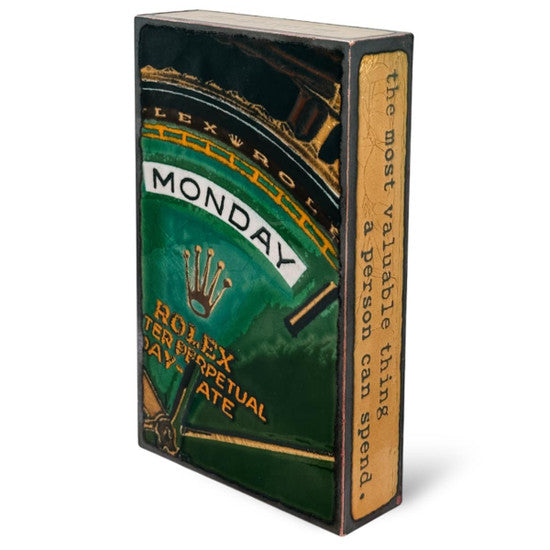 Quote begins on left side and finishes on right- author noted on top. Each Spiritile is made from copper, glass and wood. They can hang on a wall or stand alone, and will never fade or tarnish